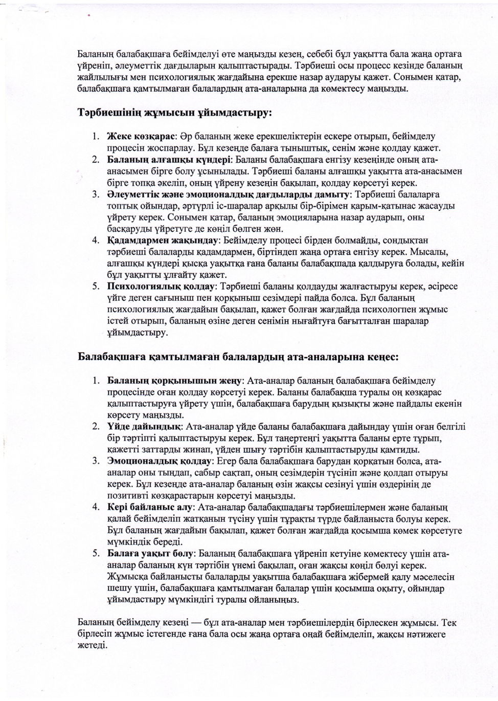 Баланың балабақшаға бейімделуі » №45 «Балбұлақ» бөбекжай-бақшасы