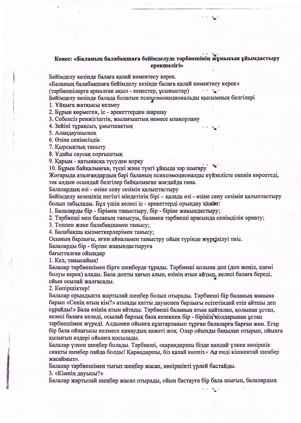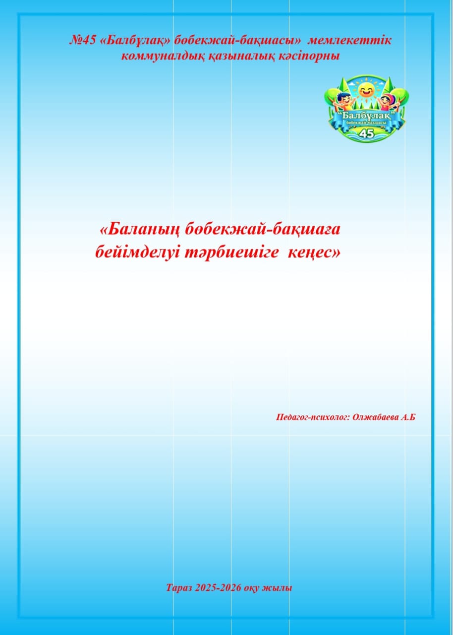 Баланың балабақшаға бейімделу барысында тәрбиешіге кеңес » №45 «Балбұлақ» бөбекжай-бақшасы