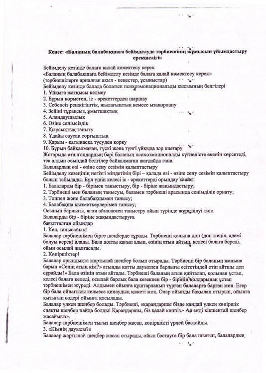 Баланың балабақшаға бейімделу барысында тәрбиешіге кеңес