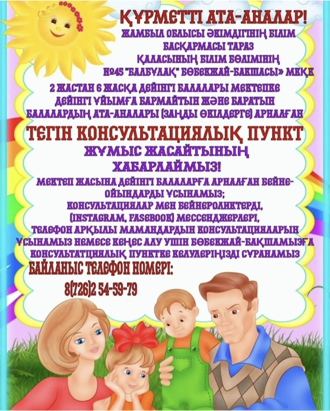 Когсультатциялық пункт хабарландыру » №45 «Балбұлақ» бөбекжай-бақшасы