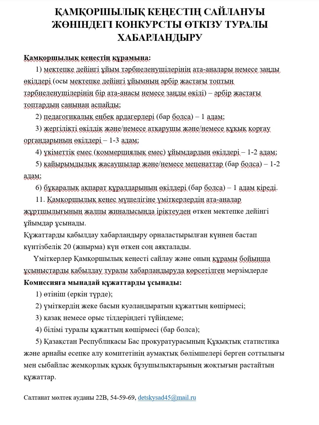 17 сентябрь 2025 0 1 2 3 4 5 ҚАМҚОРШЫЛЫҚ КЕҢЕСТІҢ САЙЛАНУЫ ЖӨНІНДЕГІ КОНКУРСТЫ ӨТКІЗУ ТУРАЛЫ ХАБАРЛАНДЫРУ