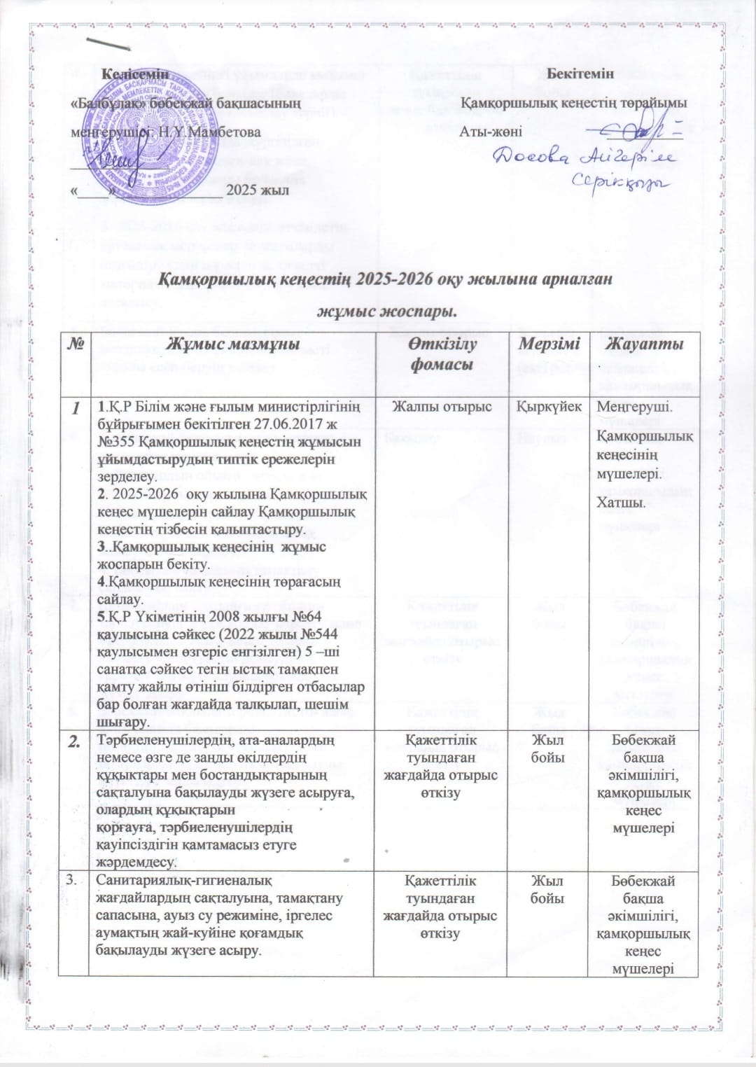 » » » Қамқоршылық кеңестің жылдық жұмыс жоспары