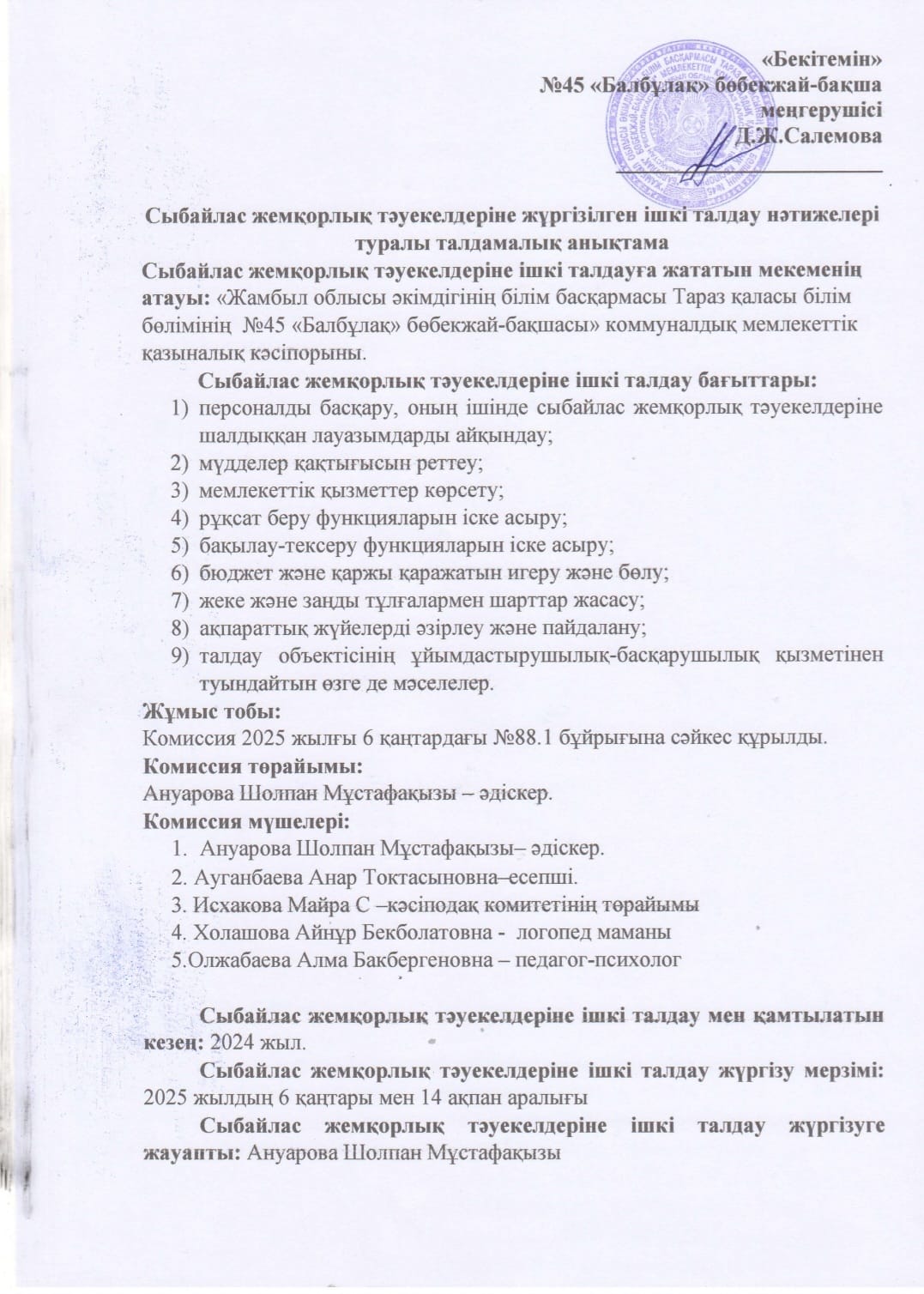 Ішкі талдау анықтама2 » №45 «Балбұлақ» бөбекжай-бақшасы